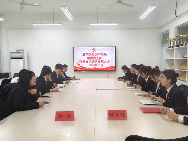 11月9日,法学院法学系学生党支部、知识产权系学生党支部分别于西校区10#C527、A510召开接收预备党员大会,法学院学生党支部全体党员及本批次党员发展对象参加会议。