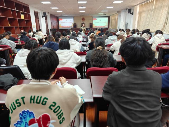 本次党课围绕“组织发展工作实施细则”开展教育,涵盖入党的相关知识与规定、入党积极分子的考察方式等内容。授课过程中,王伟伟以学生“入队、入团、入党”的三大追求为切入点,引导在场学员认识到组织发展工作细则在实际生活中的重要作用,理解党组织的严肃性和纪律性。接着,王伟伟为在场学员梳理入党的全过程,深入剖析从积极分子到正式党员这一转变阶段的重点与难点,并勉励在场学员不断提升理论水平,全程恪守实事求是的原则,为政治生涯扣好求真务实的第一粒扣子。此外,王伟伟结合往届校友的真实经历,详细讲解档案填写与政审的流程与注意事项,提醒在场学员务必避免涂改、错漏等问题,培养其严谨细致的行事能力。最后,王伟伟强调成为党员是一生的追求,希望在场学员能以“慎终如始”的态度,认真对待党员发展过程中的每个阶段。