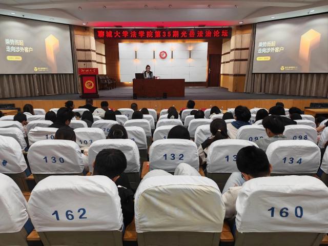 11月7日,法学院于西校区图书馆大报告厅举办第三十五期光岳法治论坛,论坛邀请北京市盈科(青岛)律师事务所高级合伙人葛明溪律师做《跨境投资与国际贸易法律风险管理》的主题报告,法学院副院长刘海江,兼职辅导员陈星宇出席此次讲座,辅导员李宁担任讲座主持人,全体研究生以及2024级本科生参加此次讲座。