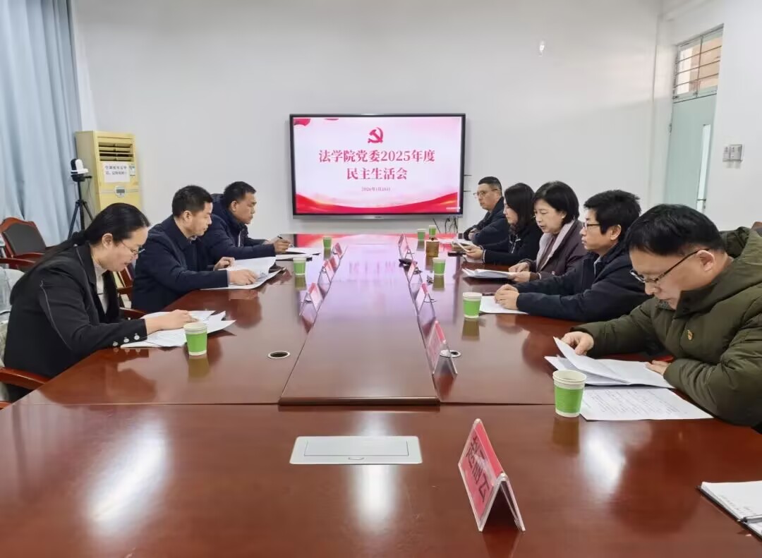1月26日下午,法学院党委召开2025年度领导班子民主生活会。学校党委组织部部长杨宏力、督导组副组长宋家臣、联络员于娜与会指导。学院领导班子成员参加会议,党委组织员列席会议,会议由学院党委书记季昌伟主持。学院党委会前扎实开展理论学习、广泛征求意见、深入谈心谈话,做好充分准备。会上,季昌伟代表学院党委班子作对照检查,全面梳理查摆问题,深刻剖析问题产生的思想根源,有针对性地提出整改措施。随后,季昌伟带头作个人对照检查,班子成员逐一对照检查,严肃开展批评与自我批评,达到了红脸出汗、排毒治病的效果。