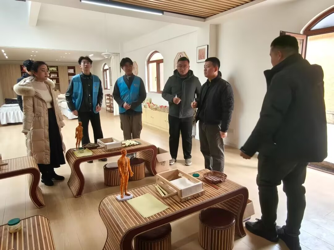 活动中,专业人员指导师生沉浸式体验历史悠久的非遗艾灸技艺,通过亲手操作传统灸法与手法,切身领略中医理疗温通调和、扶正祛邪的独特魅力。现场陈列出从原料到成品的艾草全链条产品,师生系统观摩从生态种植、适时采收、古法加工到现代成品转化的完整产业脉络,尤其在接触到智能艾灸仪、艾草电子贴等现代健康科技产品时,更直观感受到传统艾草文化与当代大健康产业在实践应用中的深度融合与创新。专题讲解环节中,主讲人深入梳理艾草在中华传统文化中的历史渊源、民俗寓意与人文价值,将一味草木与千载文脉生动联结,深化在场师生对乡土文化的情感认同与自觉传承意识。