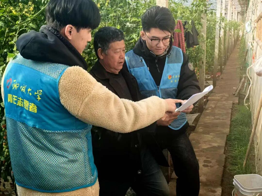 此次活动是一次精准对接乡村需求的专项行动,志愿者紧紧围绕“高质量振兴——设施农业的提质增效之路”课题,将法学严谨的逻辑思维与社会学专业研究方法深度融合,精心设计出一套贴合农业实际的调研方案。活动伊始,志愿者与大棚种植户深入交流,聚焦西红柿种植技术、病虫害防治、土壤换茬、种子采购等核心问题,细致了解农业设施运行现状与生产瓶颈。随后,在农户带领下,志愿者实地考察大棚,记录作物长势与色泽,通过线上及纸质问卷全面调研农户收入、年产量、技术成本、社会保障及合法合理诉求,同步开展普法宣传教育,围绕民事纠纷化解等内容进行讲解,引导农户依法维护自身权益。活动后期,志愿者对调研数据、走访记录、实地情况进行系统汇总分析,形成真实有效的调研成果,为后续建立乡村农业发展支持体系积累宝贵数据。农户反馈,经过政策解读后,对农业设施的发展前景更有信心,参与乡村振兴的积极性更加高涨。