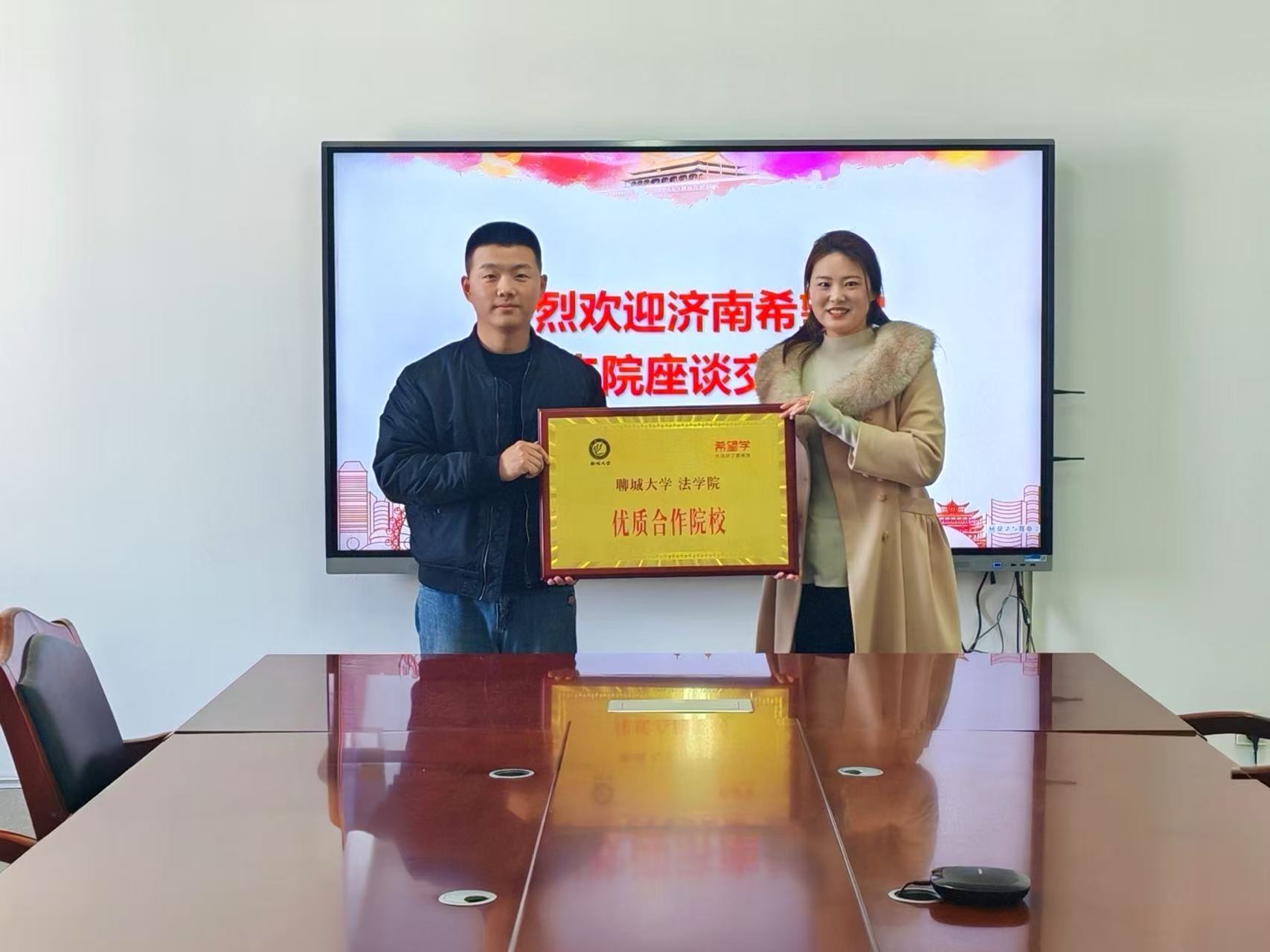 座谈会上,我院对济南希望学一行的到来表示热烈欢迎,双方围绕学生实习就业、校企协同合作等核心议题展开深入交流。交流中,刘胜男结合学生毕业进度,详细阐述企业2026年春招整体安排,为学生入职衔接提供清晰指引。此外,她介绍进校双选、专场宣讲、校企签约等多元合作形式,可依托企业资源为毕业生提供面试指导、简历优化等就业帮扶。座谈尾声,济南希望学向我院赠予“优质合作院校”牌匾,进一步寄托对未来持续深化交流、携手共育人才的美好期许。