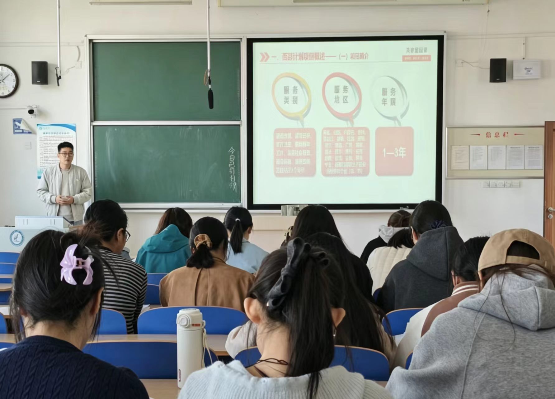 主讲人于进老师围绕西部计划核心内容展开系统讲解,从项目定义、服务类别、服务地区及服务年限等基础信息入手,清晰梳理西部计划的招募流程、报名条件与选拔标准。结合政法学院专业特色,他重点解读学子与乡村社会治理、基层青年工作等岗位的适配性,指出他们在公共事务处理、政策解读等方面的专业优势,为学子投身西部基层提供精准指引。接着于进老师深入剖析西部计划的政策保障体系,详细介绍服务期间的生活补贴、社保缴纳等福利,以及服务期满后考研加分、考公定向招录、学费补偿等优惠政策,切实解答学子关于职业发展的核心疑虑。同时,于进老师结合往届优秀志愿者的服务事迹,生动阐述基层工作的实践价值与成长意义,激励学子以青春之我担时代之责。互动答疑环节,同学们积极提问并围绕地区选择、岗位匹配、适应基层工作等问题展开交流,于进老师逐一耐心解答,现场氛围热烈浓厚。
